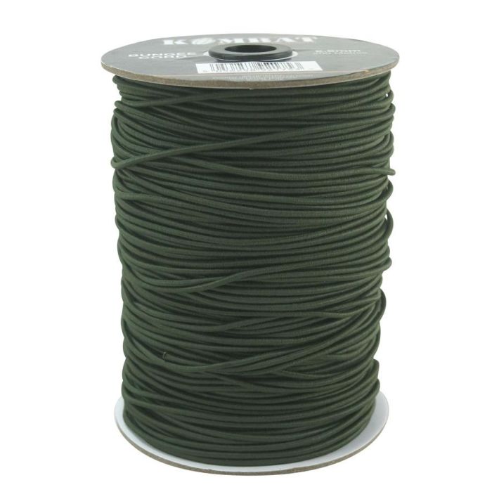The Kombat 2.5mm Bungee Cord - 200m - Olive Green is a durable and versatile elastic cord ideal for a variety of outdoor, survival, and tactical applications.